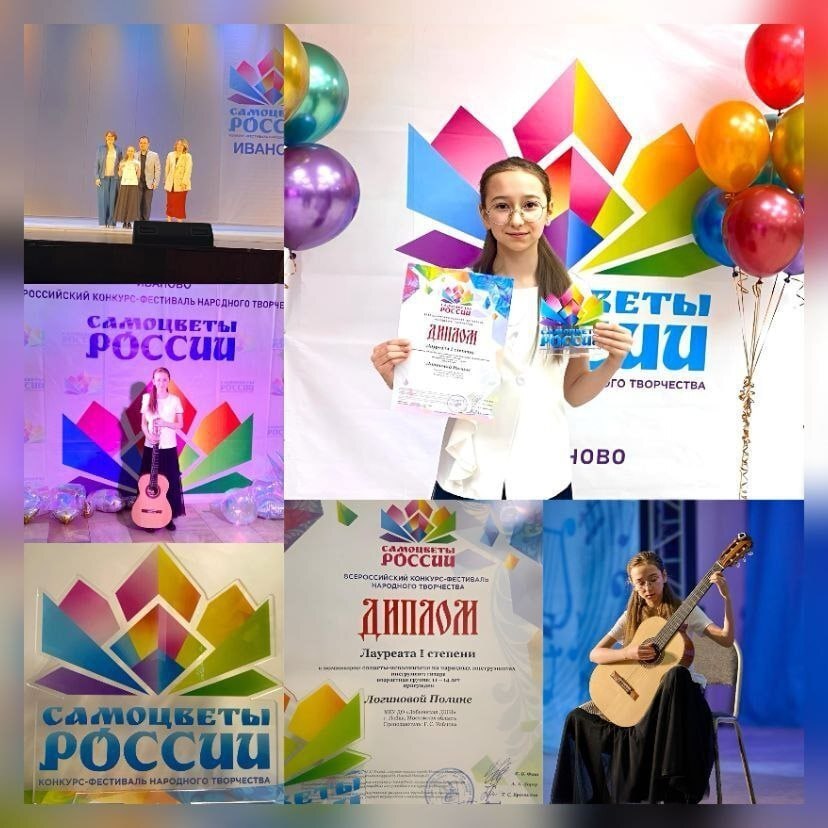 Полина Логинова под руководством преподавателя Галины Койновой показала высокий уровень подготовки и стала лауреатом I степени номинации «Солисты — исполнители на народных инструментах (гитара)».