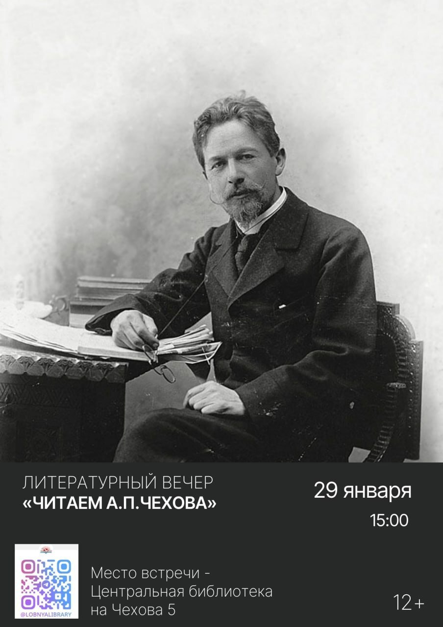 29 января Центральная библиотека Лобни приглашает жителей на литературный вечер, посвящённый дню рождения Антона Павловича Чехова. Мероприятие будет приурочено к 166-й годовщине со дня рождения писателя.