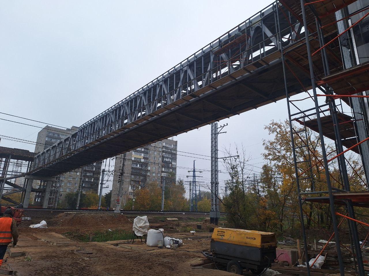 В Лобне завершаются основные строительные работы надземного перехода через железнодорожные пути Савеловского направления. Этот объект соединит улицу Кольцевую с улицей Полевой.