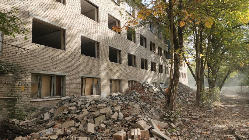 На данный момент специалисты проводят демонтаж перегородок. Далее запланированы инженерные работы, перепланировка и обновление фасада здания. Сегодня в работе задействовано 14 человек.