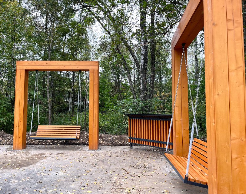 Уже сейчас любой желающий может воспользоваться новыми комфортным качелями.