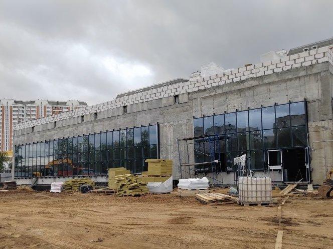 В микрорайоне Катюшки городского округа Лобня продолжается возведение физкультурно-оздоровительного комплекса с бассейном.