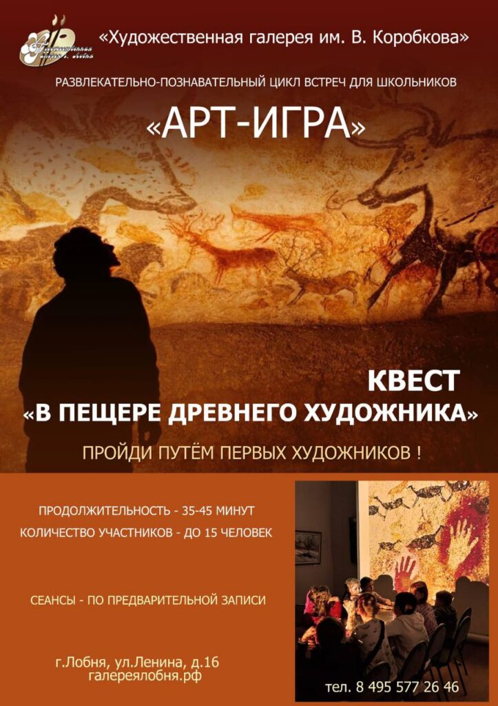 В ходе арт-игры «В пещере древнего художника» из цикла развлекательно-познавательных встреч для школьников можно совершить увлекательное путешествие в далёкое прошлое – и человечества, и искусства.