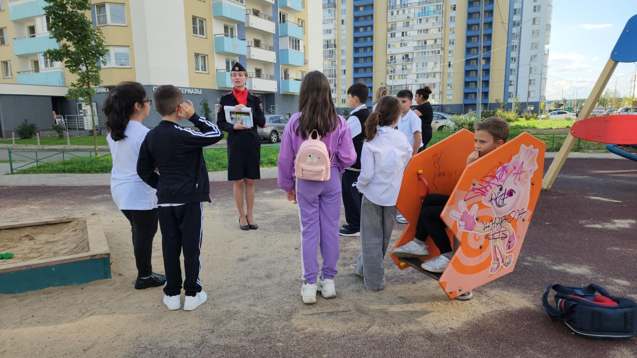 Инспектор Анастасия Семёнова пообщалась с детьми и рассказала им, как правильно вести себя во дворе. Она объяснила, где лучше играть, какие опасности могут представлять припаркованные машины, и какие правила необходимо соблюдать, находясь рядом с дорогой.