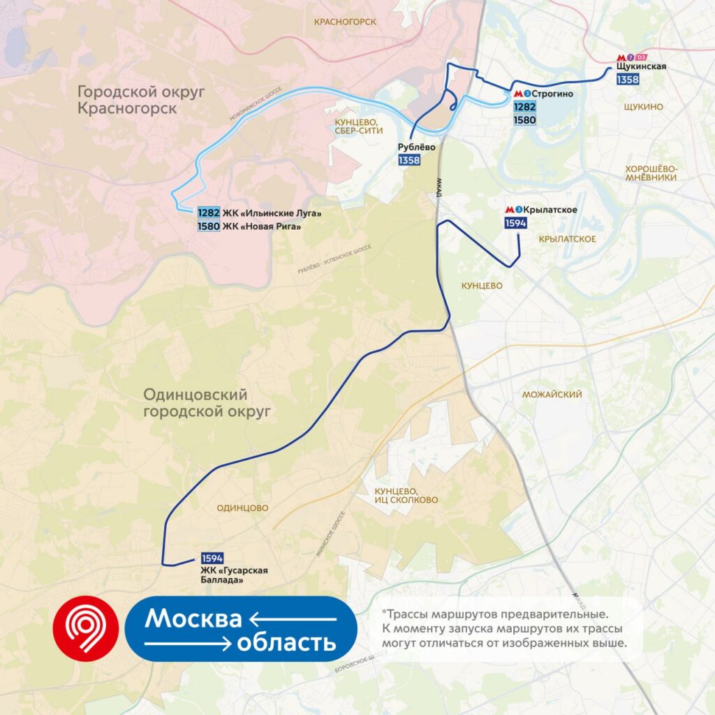 — № 1580 «Метро «Строгино» — «ЖК «Новая Рига»;