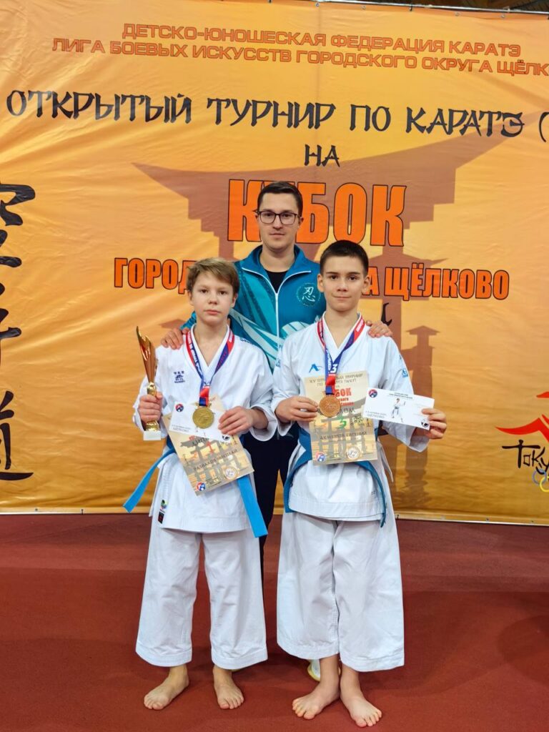 Третье место соревнований получили Евгений Ахметов и Григорий Колесов в категории ката среди юношей 12-13 лет и 8-9 лет, соответственно.