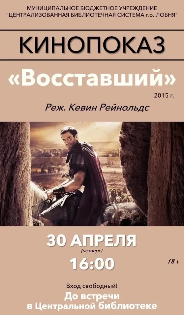 30 АПРЕЛЯ в 16:00 состоится показ фильма «Восставший» (2015 г.)