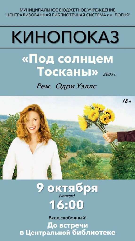 9 октября в 16:00 состоится показ фильма «Под солнцем Тосканы » (2003)
