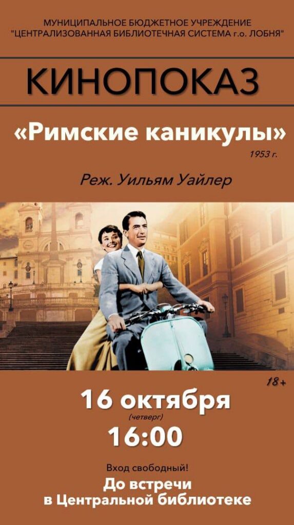 16 октября в 16:00 состоится показ фильма «Римские каникулы» (1953)