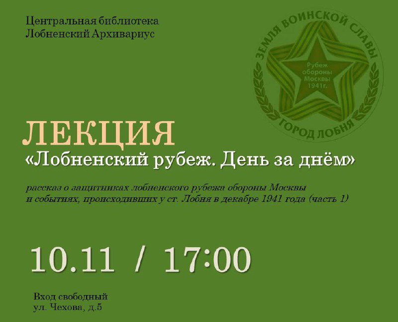 “Лобненский рубеж. День за днём”: Вторая лекция в Центральной библиотеке!