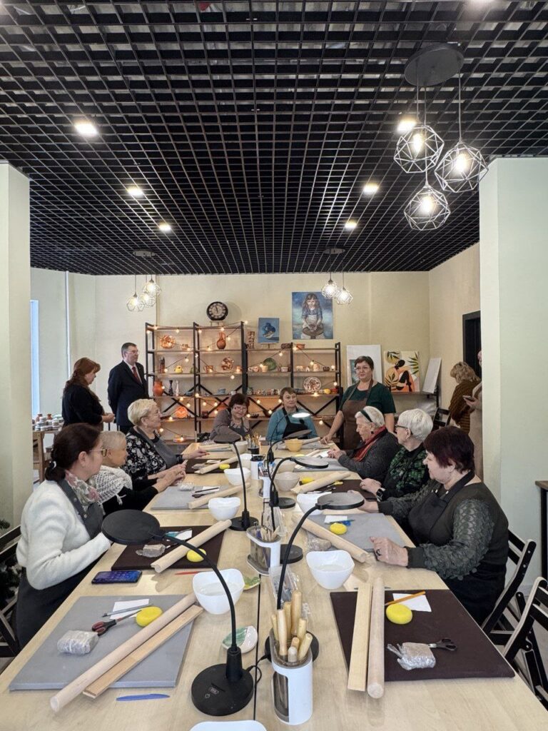 Участники проекта смогли принять участие в увлекательном мастер-классе по созданию керамических подвесок в студии гончарного искусства «Лунный кот». Там долголеты приступили к созданию своих будущих украшений.