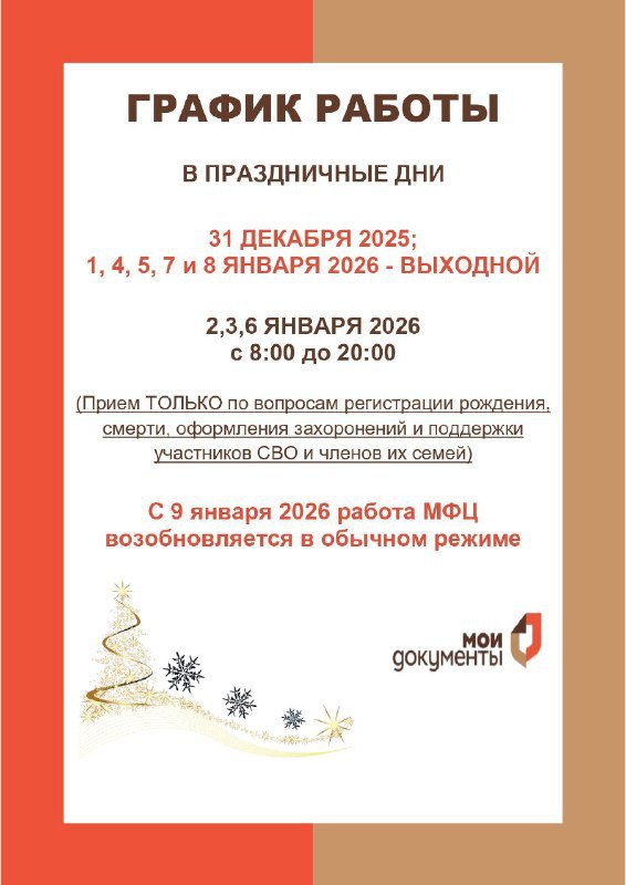 Прием будет осуществляться только по вопросам регистрации рождения, смерти, оформления захоронений и поддержки участников СВО и членов их семей.
