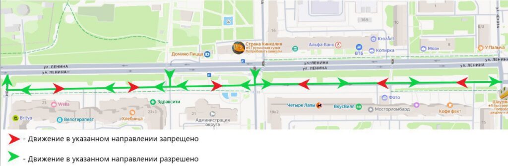 С 10 ноября на дублере улицы Ленина в Лобне для улучшения условий движения всех участников, в соответствии с утверждённым ПОДД схема движения автотранспорта изменится на одностороннюю.