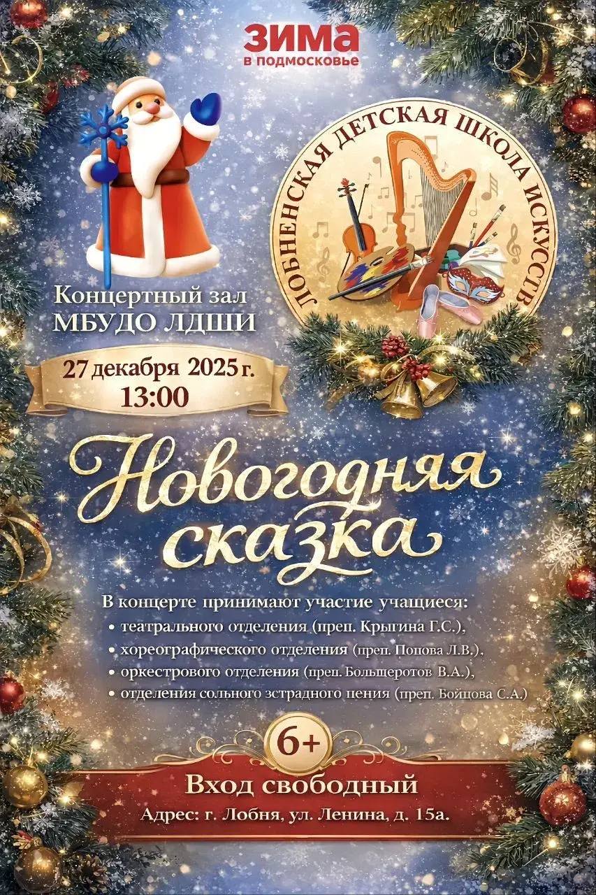27 декабря 2025 года в 13.00 в концертном зале Лобненской детской школе искусств юные зрители и взрослые смогут попасть в Новогоднюю сказку, и даже стать её героями.