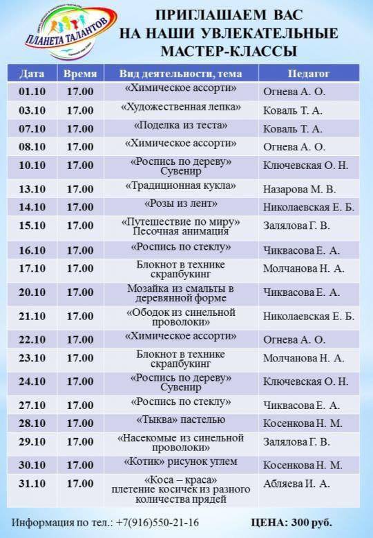 Весь месяц — множество мастер‑классов для всех возрастов — выбирайте то, что вдохновляет именно вас!