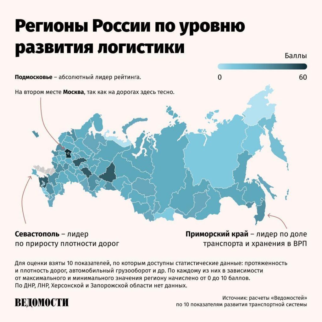 По данным исследования “Ведомости. Страна” Московская область возглавила общероссийский рейтинг регионов с наиболее развитой логистической инфраструктурой. Регион также занял первое место по объёму пассажирских автобусных перевозок.