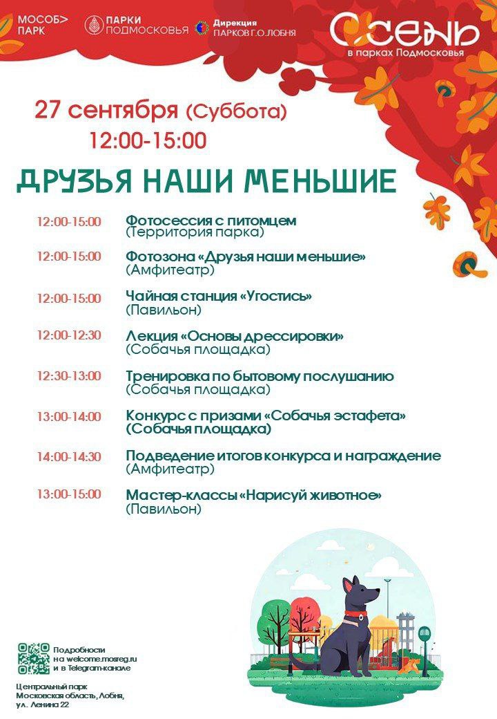 27 сентября в Центральном парке города Лобня стартует праздничная программа «Друзья наши меньшие», посвященная домашним питомцам.