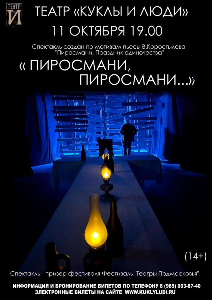 11 октября 2025 года в 19:00 на сцене театра “Куклы и люди” спектакль – призер Фестиваля “Театры Подмосковья” «Пиросмани, Пиросмани …» (16+)