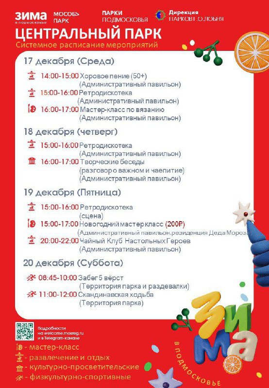 С 15 по 21 декабря в парках Лобни запланированы развлекательные и спортивные мероприятия.