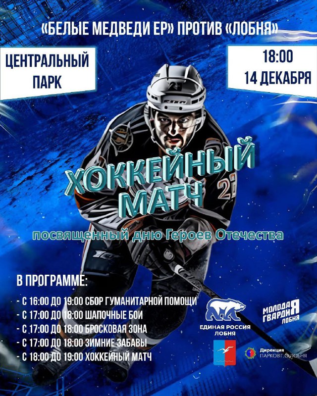 Уже 14 декабря в Центральном парке ледовая арена превратится в поле напряжённой борьбы, ярких эмоций и незабываемых моментов.
