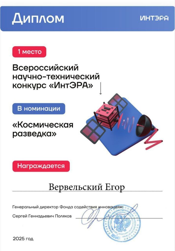 Егор стал лучшим в номинации «Космическая разведка», продемонстрировав глубокие знания и творческий подход к решению задач.