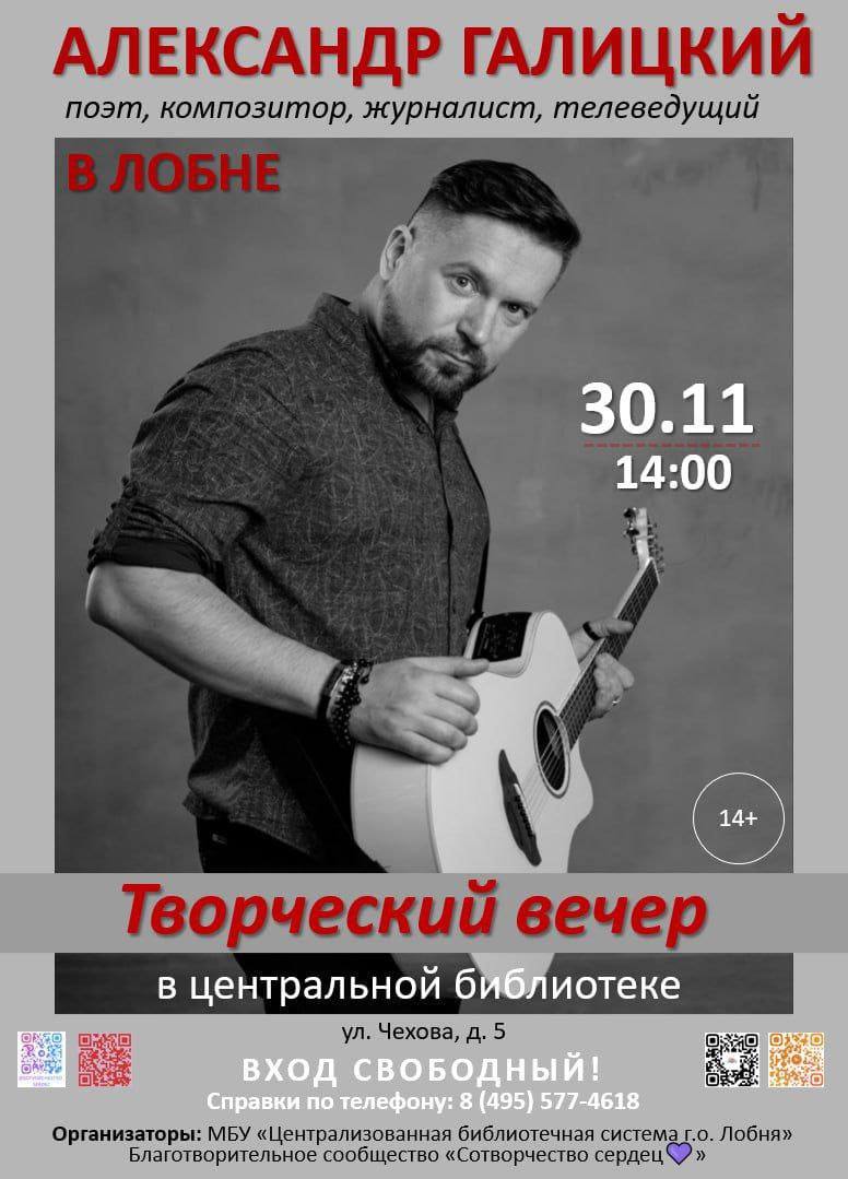 30 НОЯБРЯ в 14:00 ТВОРЧЕСКИЙ ВЕЧЕР АЛЕКСАНДРА ГАЛИЦКОГО