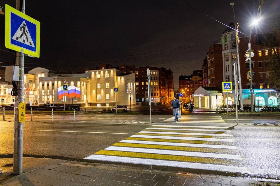 Специальная подсветку на пешеходных переходах проецирует зебру прямо на дорогу и дополнительно освещает ее.