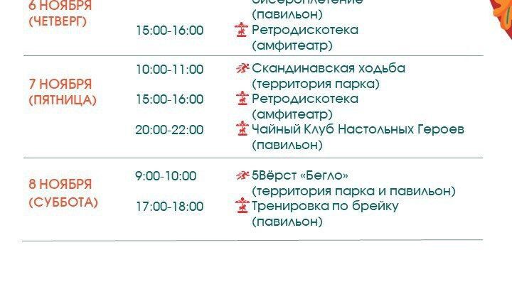 С 3 по 9 ноября в парках Лобни запланированы развлекательные и спортивные мероприятия. Так, с 6 по 8 ноября в Центральном парке культуры и отдыха жителей и гостей города ждут творческий мастер-класс и настольные игры. Любителей спорта приглашают