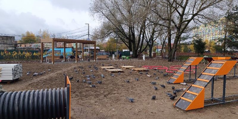 В парке Защитников Москвы городского округа Лобня начался монтаж ограждения новой специализированной площадки для выгула и дрессировки собак. Конструкция включает прочные столбы, заглубленные на метр в землю, и двухуровневую сетку — широкую в нижней