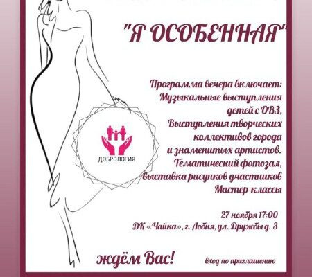27 ноября в Доме культуры «Чайка» городского округа Лобня пройдет праздничный концерт «Я особенная», посвященный Дню матери и Дню инвалида. Его организует АНО «Добрология» при поддержке администрации муниципалитета.