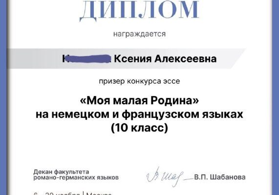 Факультет романо-германских языков Государственного университета просвещения организовал конкурс эссе «Моя малая Родина». Цель мероприятия — раскрытие любви к родному краю через иностранный язык. В конкурсе приняли участие школьницы из МБОУ Лицей