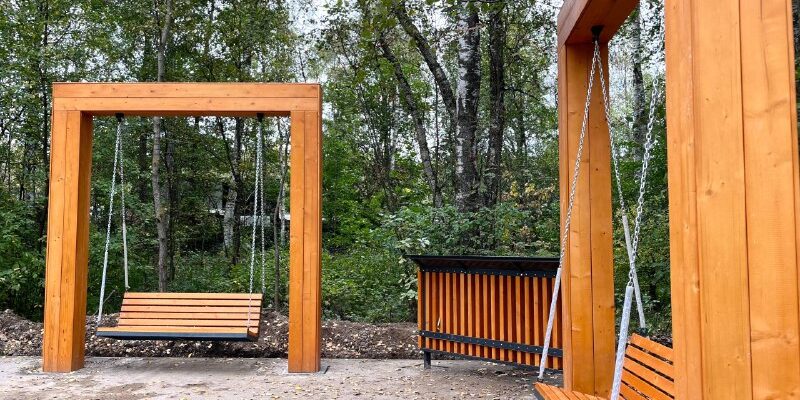 Уже сейчас любой желающий может воспользоваться новыми комфортным качелями.Также оборудована спортивная площадка, ввод в эксплуатацию которой ожидается