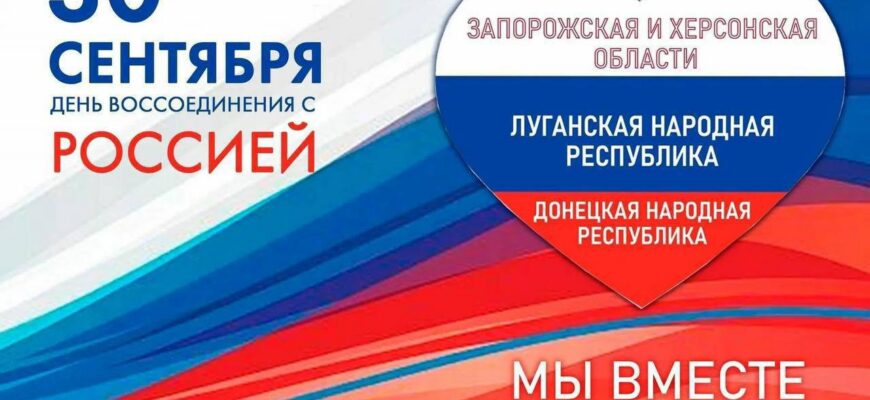 30 сентября мы отмечаем знаменательное событие — годовщину воссоединения с Россией Донецкой и Луганской Народных Республик, Запорожской и Херсонской областей.
