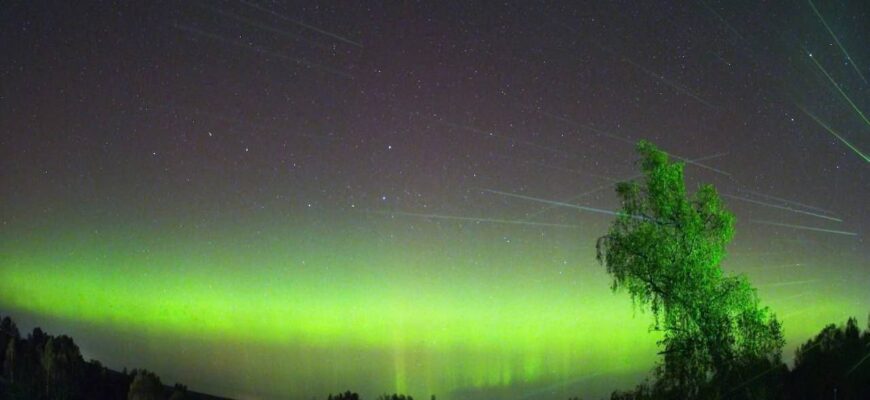 Северное сияние накрыло Подмосковье минувшей ночью. Вот такую красоту могли наблюдать жители разных округов области. Причиной редкого для наших широт явления