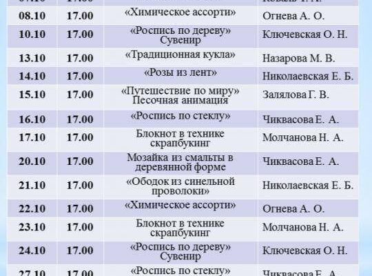 Весь месяц — множество мастер‑классов для всех возрастов — выбирайте то, что вдохновляет именно вас! Приходите — ваше творчество ждёт! Информация по тел.: +7(916)550-21-16