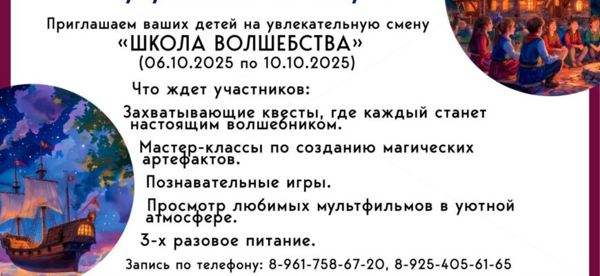 Детский досуговый клуб «У-у-улётные каникулы» в Доме культуры «Красная Поляна» приглашает школьников на смену «Школа волшебства» с 06.10.25 по 10.10.25! Что ждёт участников:Интересные квесты — настоящие испытания для юных волшебников.