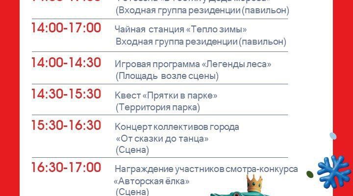 Друзья, приглашаем вас провести яркий, зимний день в Центральном парке! 13 декабря в парке пройдёт большой праздник «Парки. Сказки. Торжество». Вас ждут сказочные герои, игры для детей, фотозона «В гостях у Деда Мороза», теплая чайная станция и творческие