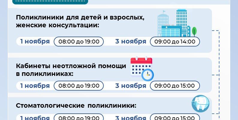 Детские и взрослые поликлиники, а также женские консультации будут работать Кабинеты неотложной помощи в поликлиниках  Вызовы врача на дом будут обслуживаться все дни с 8:00 до 20:00.  Стоматологические поликлиники будут работать по графику