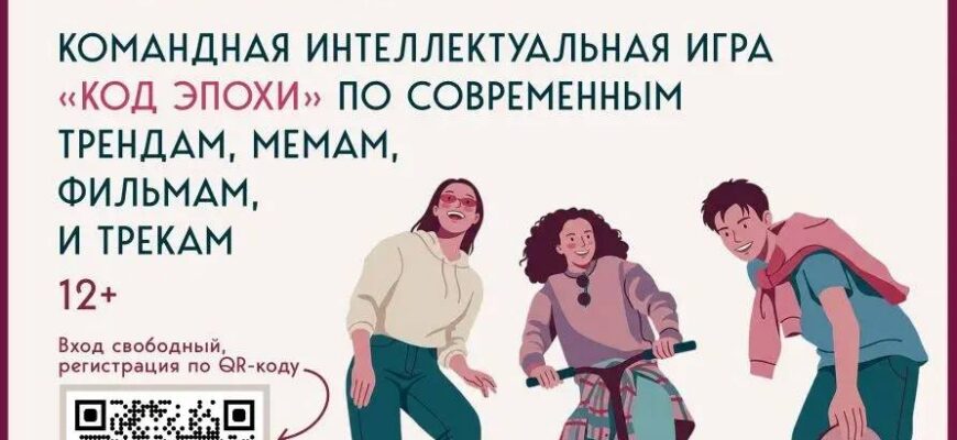 Приглашаем вас зарядиться адреналином интеллектуальной битвы и весело провести вечер с друзьями! Что? Команда знатоков объединяется, чтобы пройти испытание под названием «Код эпохи» – современные мемы, популярные фильмы, топовые треки и свежие интернет-тренды ждут своих героев!