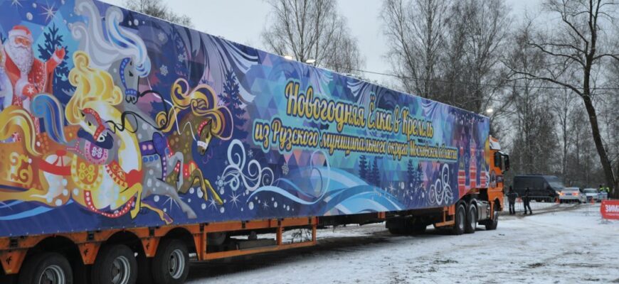 Ель, которая украсит Соборную площадь Кремля, в этом году нашли в Рузском м.о. Возраст дерева — 100 лет, диаметр ствола — 64 см, а размах нижних ветвей — 11 метров. В сердце столицы елочку везет автопоезд, за рулем которого Дед Мороз.