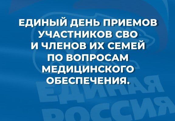 10 октября 2025 г. «Единая Россия» проведёт единый день приёма участников СВО и их семей по вопросам медицинского обеспечения Участники СВО и их родные смогут получить разъяснения по различным аспектам медицинского обслуживания, консультации по организации